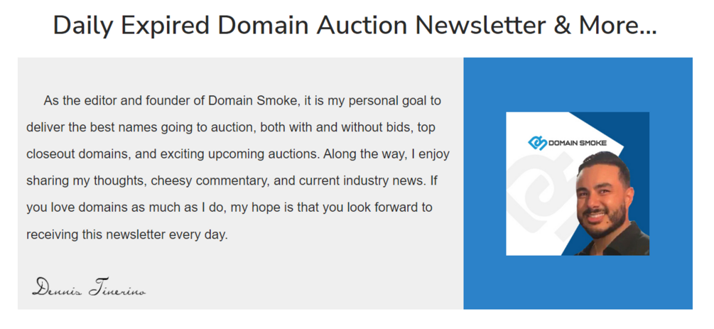 Since 2019 the Domain Smoke newsletter has helped Domain Investors around the world acquire tens of thousands of domains in the aftermarket